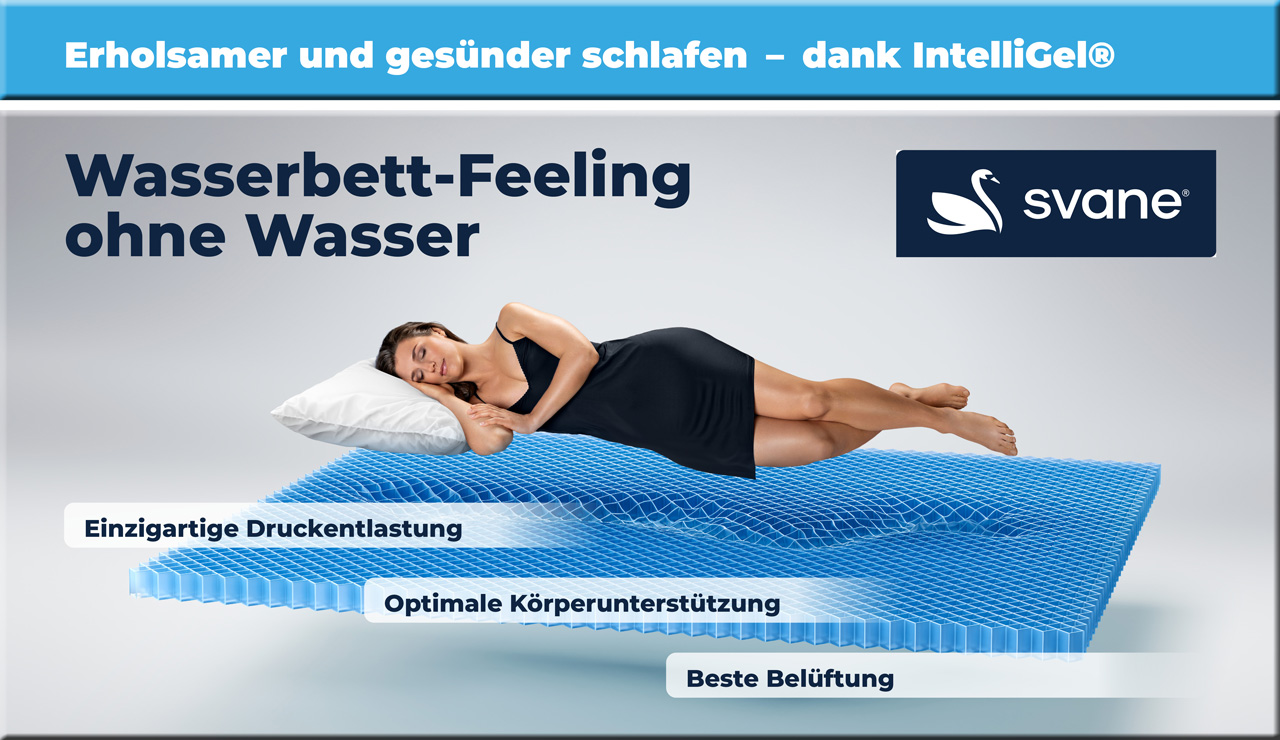 Die Marke Svane® hat sich mit dem Wasserbett sehr ähnlichen IntelliGel® bei A&S zu dem beliebtesten Schlafsystem neben dem Wasserbett entwickelt. Der Grund dafür liegt in der einzigartigen Druckentlastung, die von Körpergröße und Gewicht völlig unabhängig ist, ähnlich wie bei einem Wasserbett. Wir sagen Dankeschön an alle unsere Kunden, die sich für dieses hochwertige Schlafsystem entschieden und uns damit erneut diese tolle Auszeichnung ermöglicht haben.